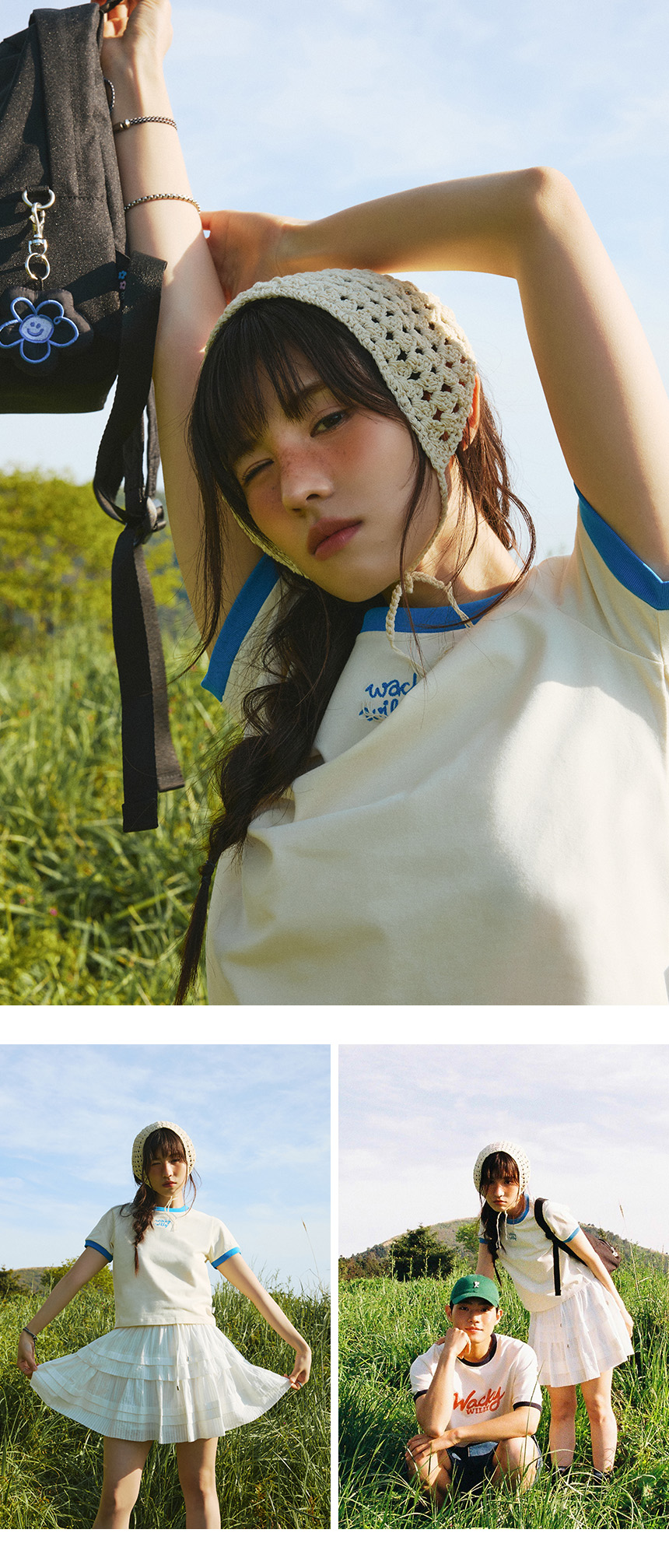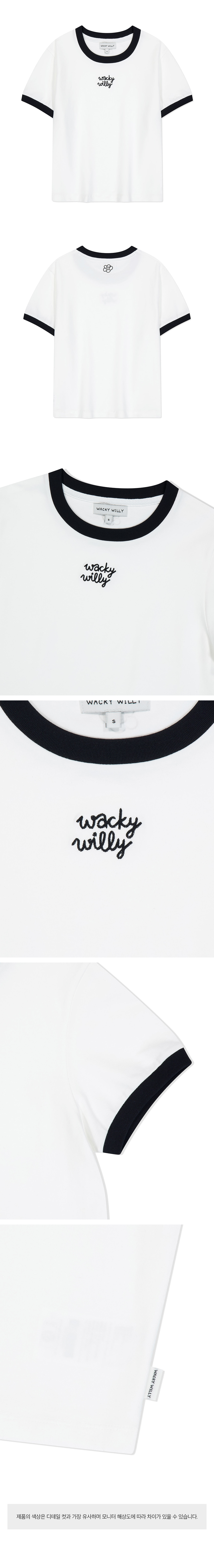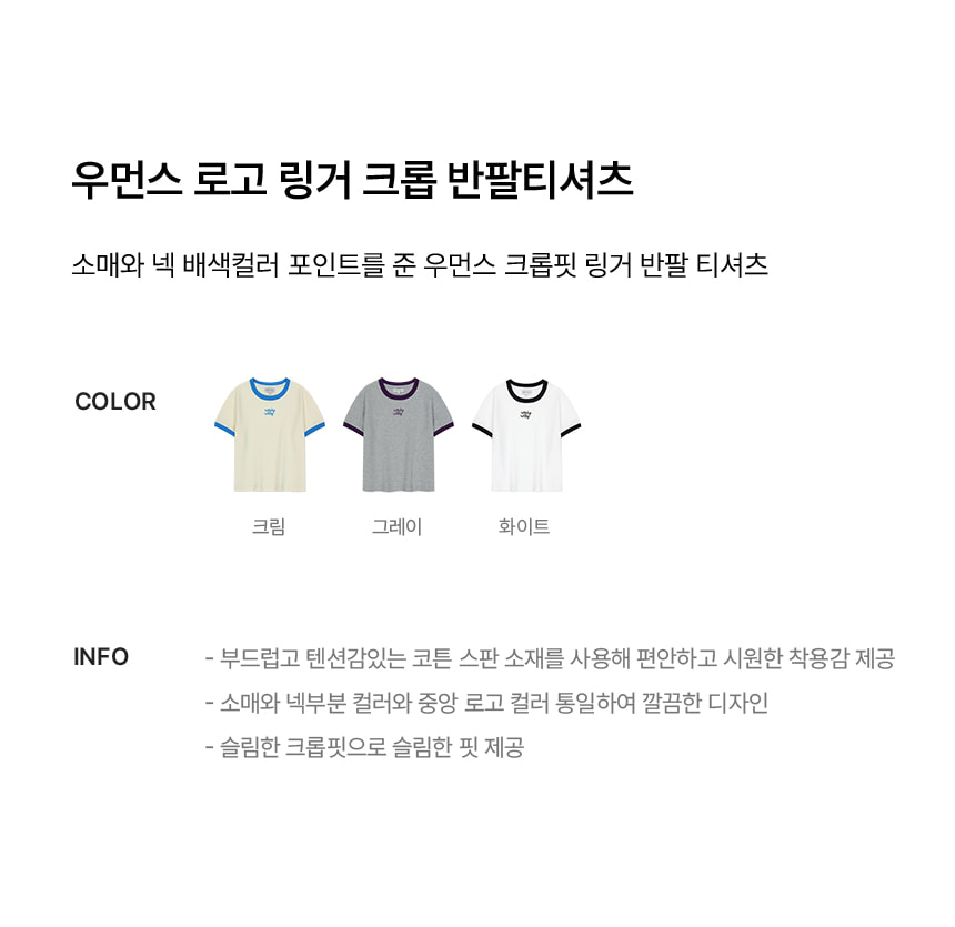 우먼스 로고 링거 크롭 반팔티셔츠 화이트