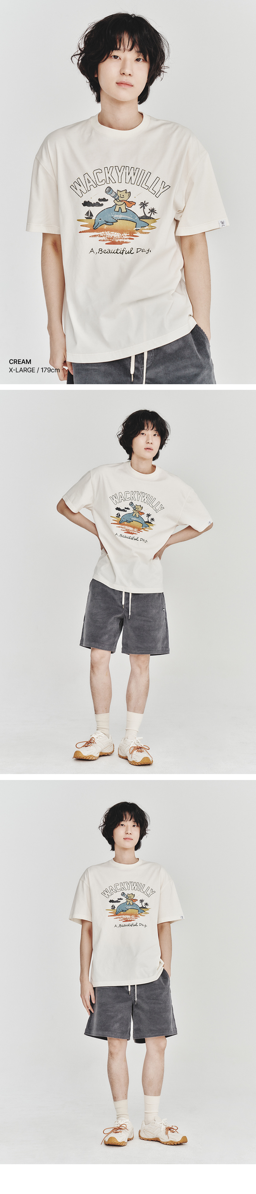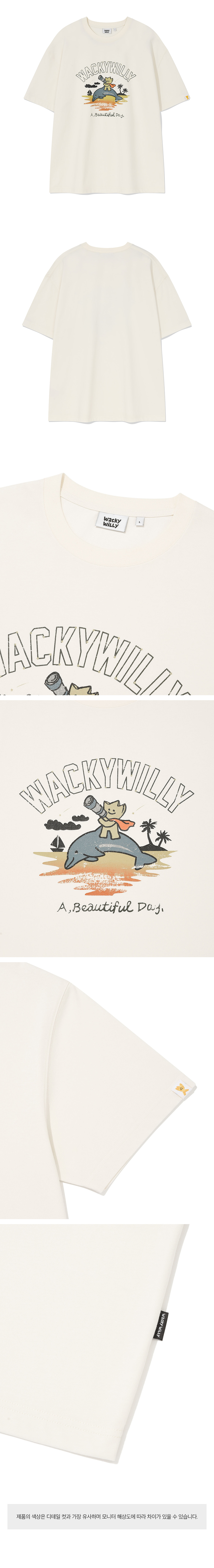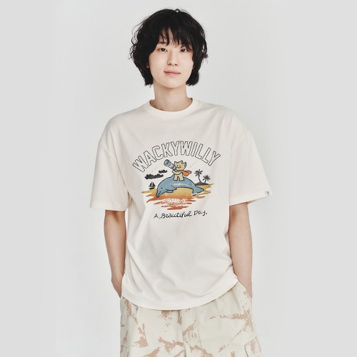 키키 앤 돌핀 그래픽 반팔 티셔츠 크림