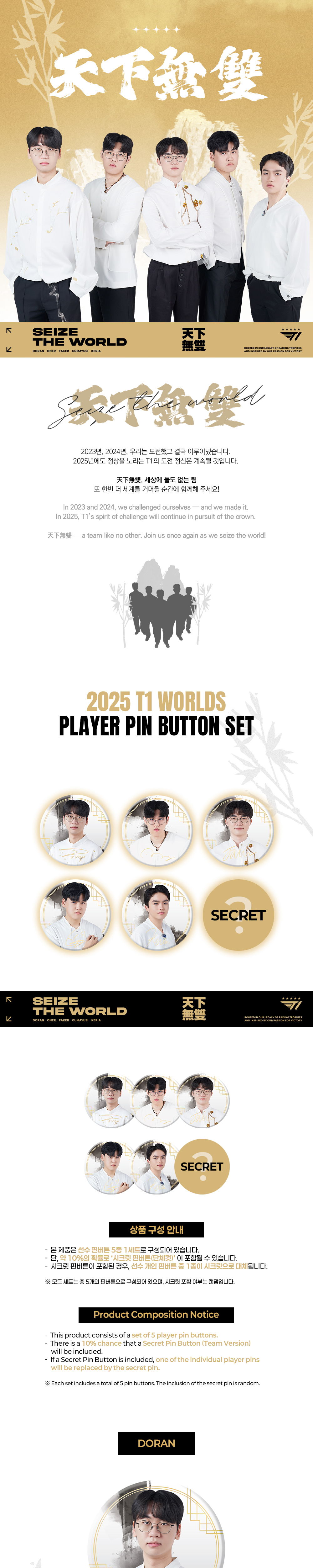 2025 T1 Worlds Player Pin Button Set