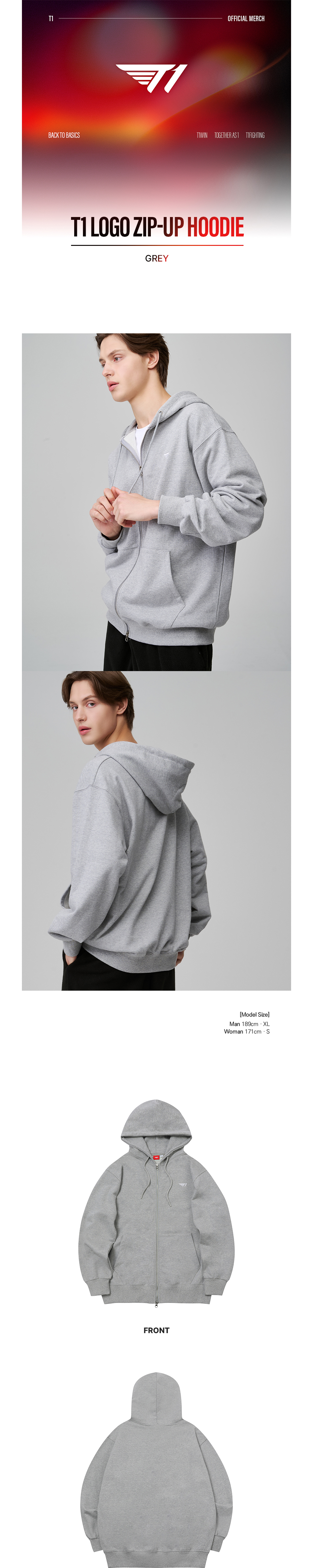 T1 Logo Zip-Up Hoodie - Grey