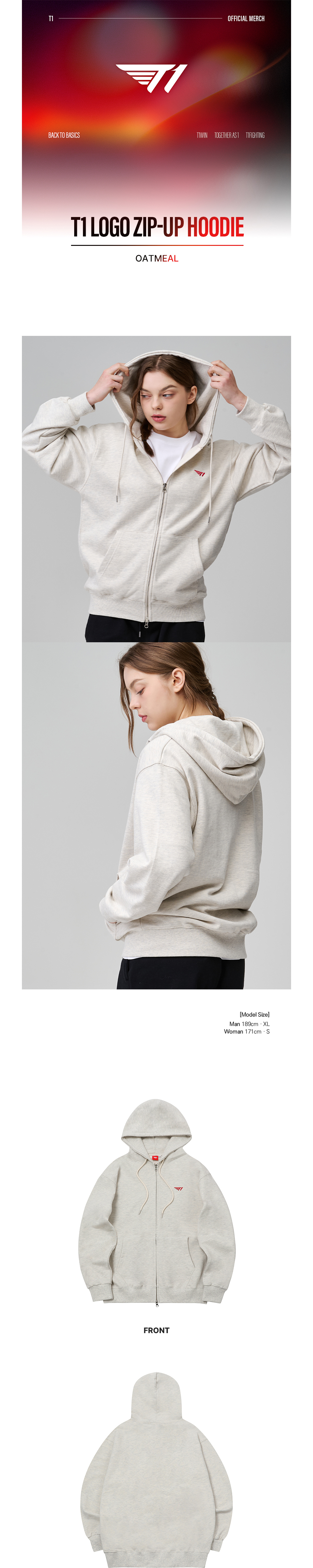 T1 Logo Zip-Up Hoodie - Oatmeal