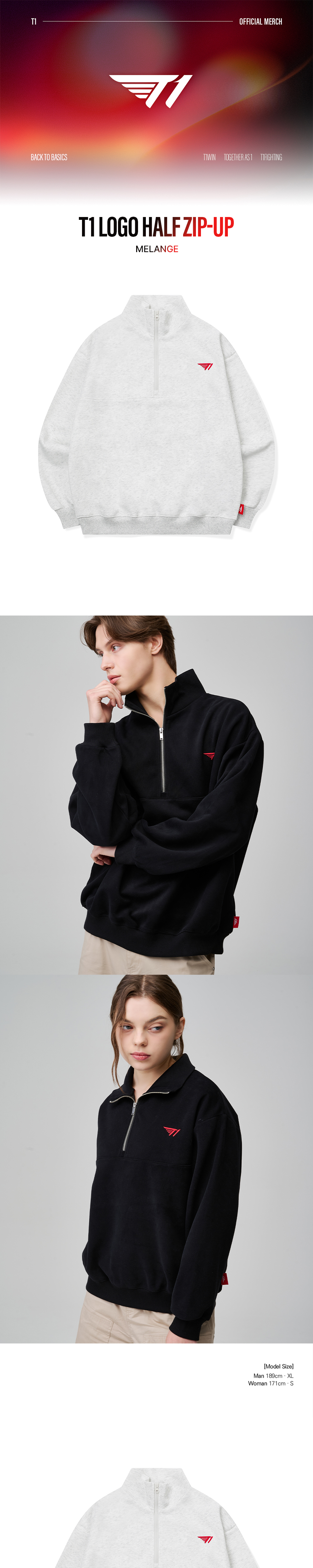 T1 Logo Half Zip-up - Melange