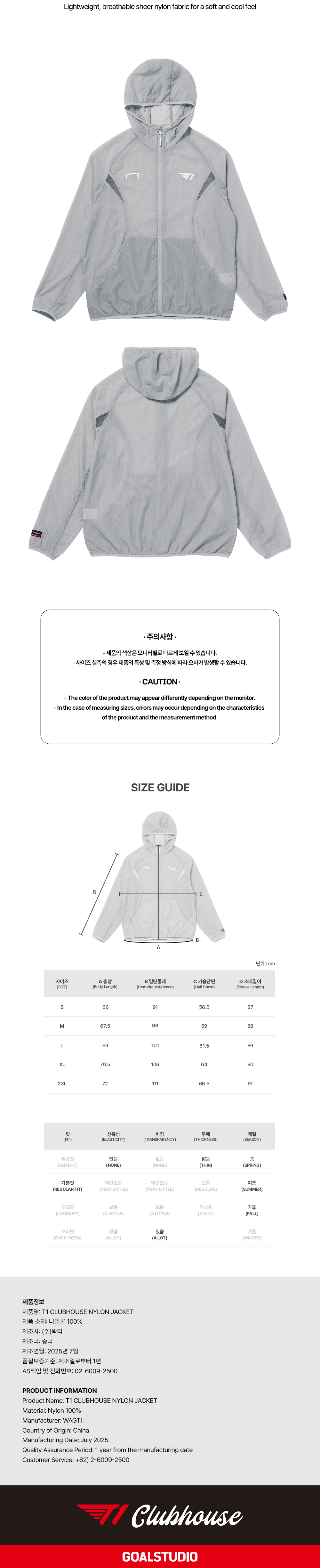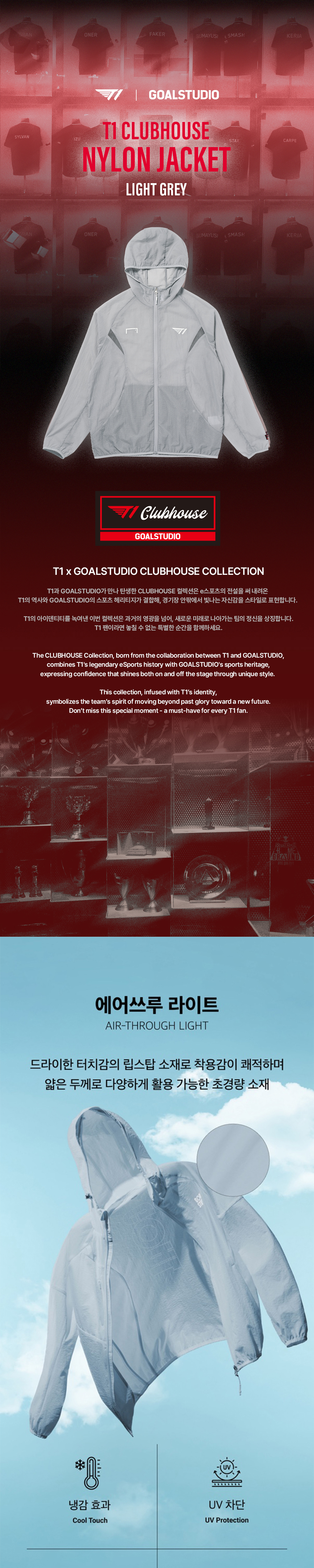 T1 CLUBHOUSE NYLON JACKET - LIGHT GREY